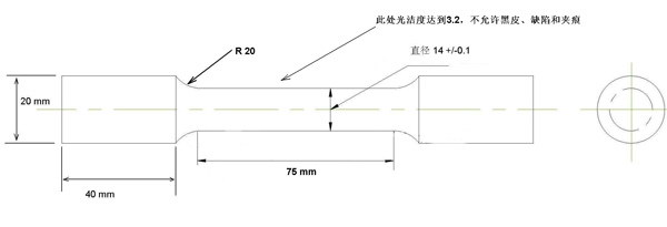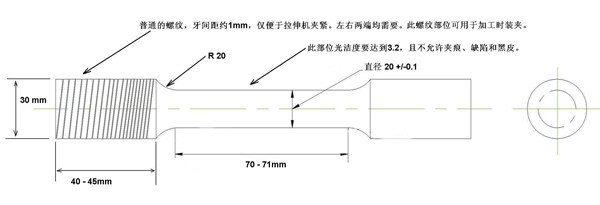The test specimen of gray iron is diameter 20mm +/-0.1, the ductile