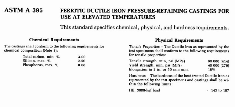ASTM A395 60-40-18 ductile iron chemical composition, physical and hardness requirements.