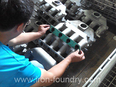 inspecting the aluminum exhaust manifold